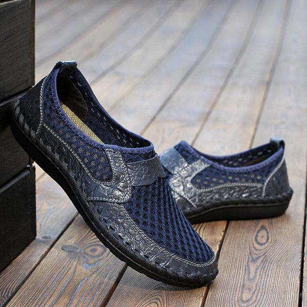 Summer Breathable Mesh Shoes Genuine Leather Slip On